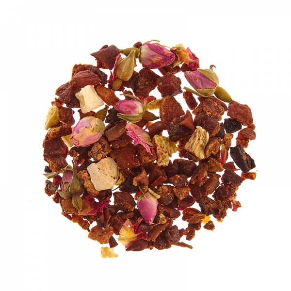 Amestec cu fructe uscate și boboci de trandafir, cu gust fin și elegant.