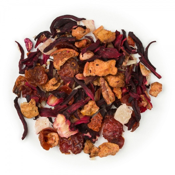 Un amestec sofisticat de hibiscus, mere și fructe exotice, care oferă o infuzie bogată în arome. Culoarea sa roșie intensă atrage privirea și promite o experiență savuroasă. Gustul este dulce-acrișor, ideal pentru a fi savurat rece sau cald. Infuzia este energizantă și plină de vitalitate. Potrivit pentru iubitorii de ceaiuri intense și parfumate.
